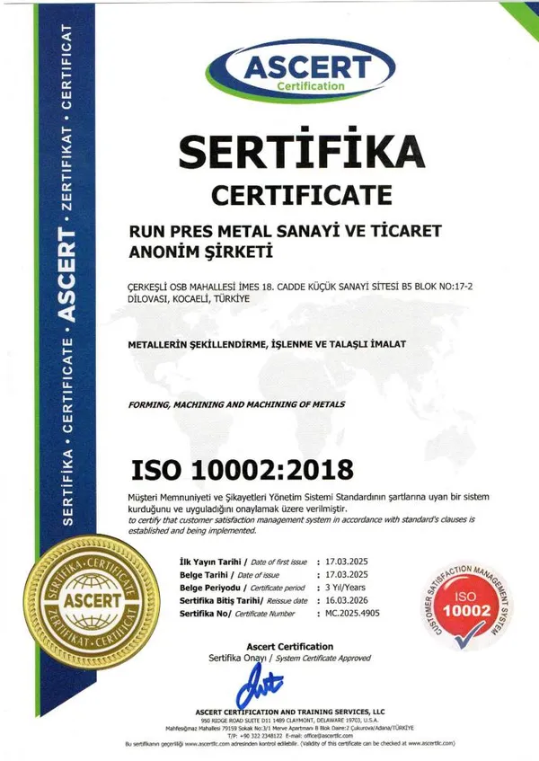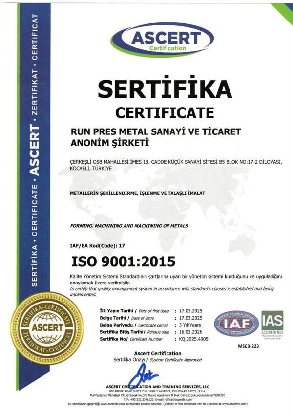 Uluslararası kalite standartlarına uygunluğumuzu belgeleyen sertifikalarımız.